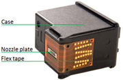 - One of the key components of an ink cartridge is the nozzle plate / print head. Attached to it are resistors that heat the ink causing it to expand and shoot through the jets onto the paper. The heating elements i.e. the transistors can burn out if you print with an empty ink tank. For this reason, most printers warn you when you are about to run low on ink. Stop printing when warned and change to a new cartridge.